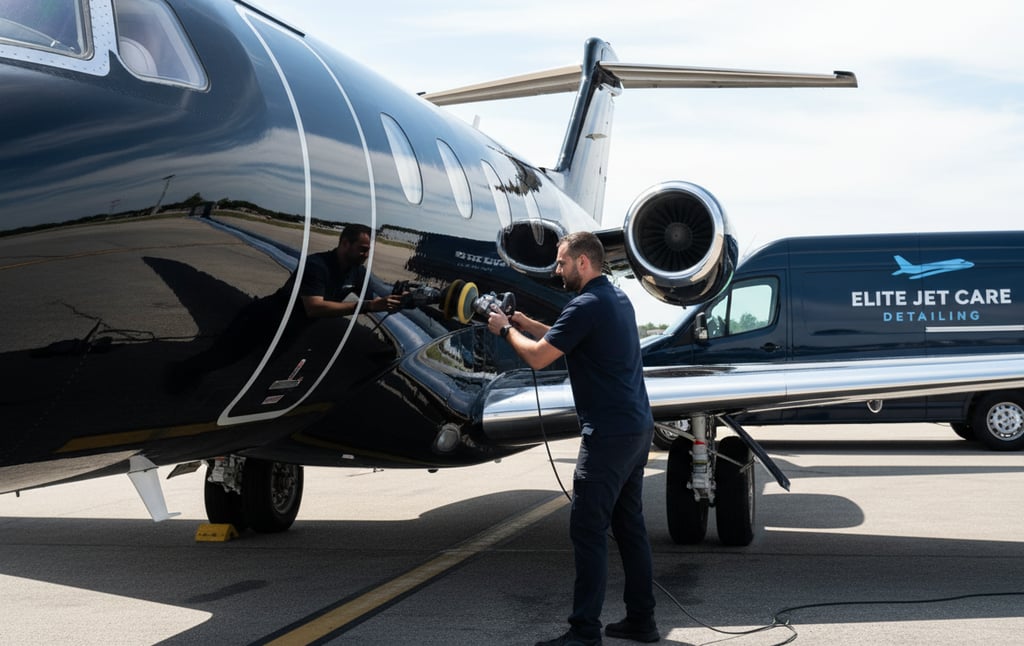 Elite Jet Care Detailing is a San Diego-based aircraft cleaning and detailing company specializing in civil aviation. Our team is dedicated to providing top-quality detailing that enhances safety, appearance, and aircraft value.